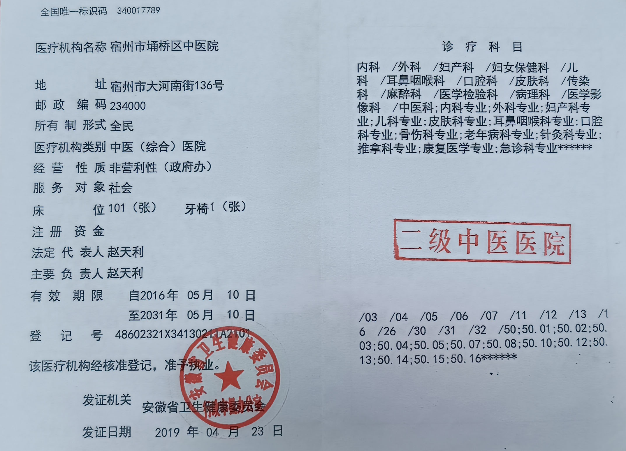 2025年埇桥区中医院 第二季度医疗服务信息公开